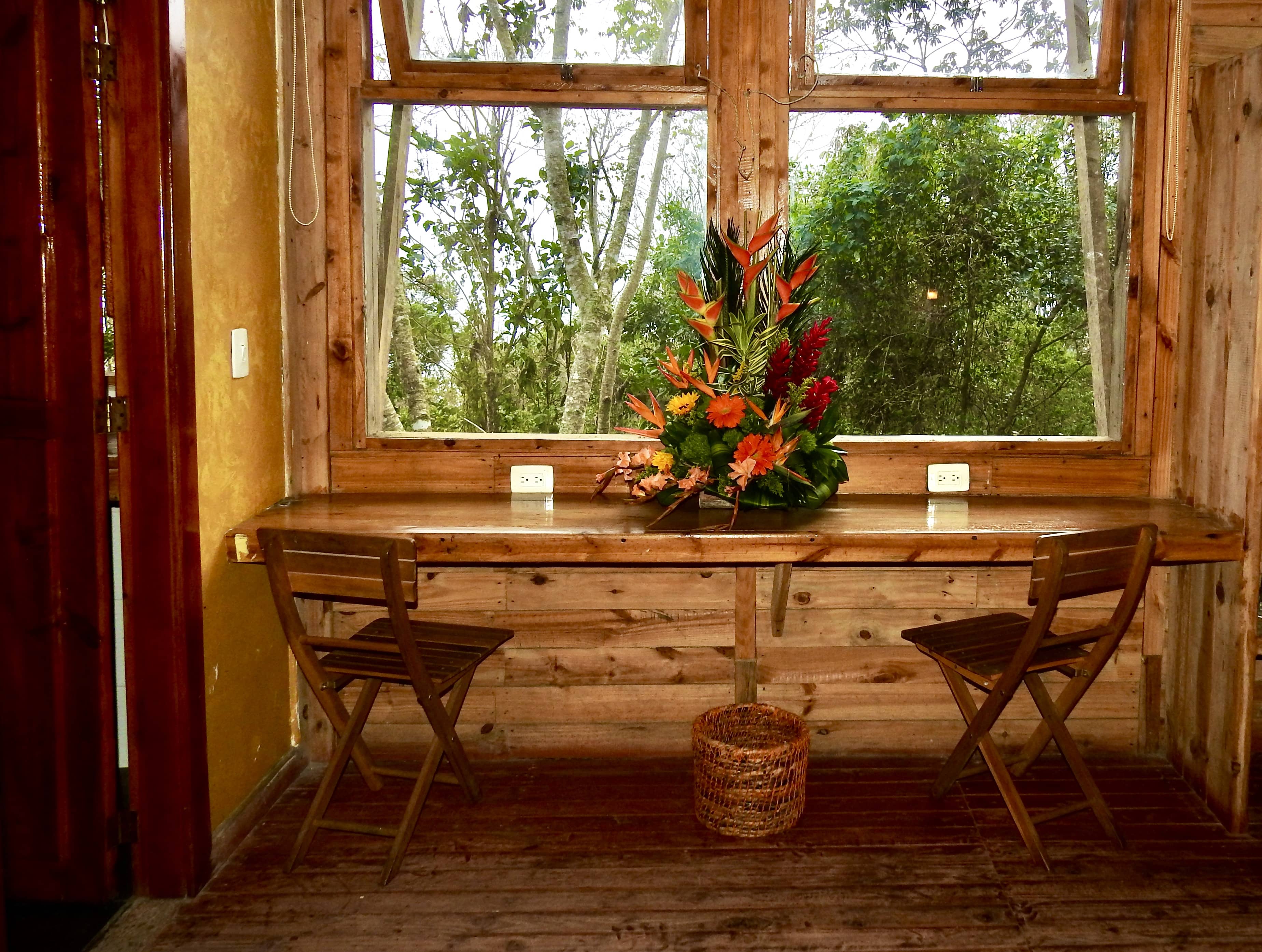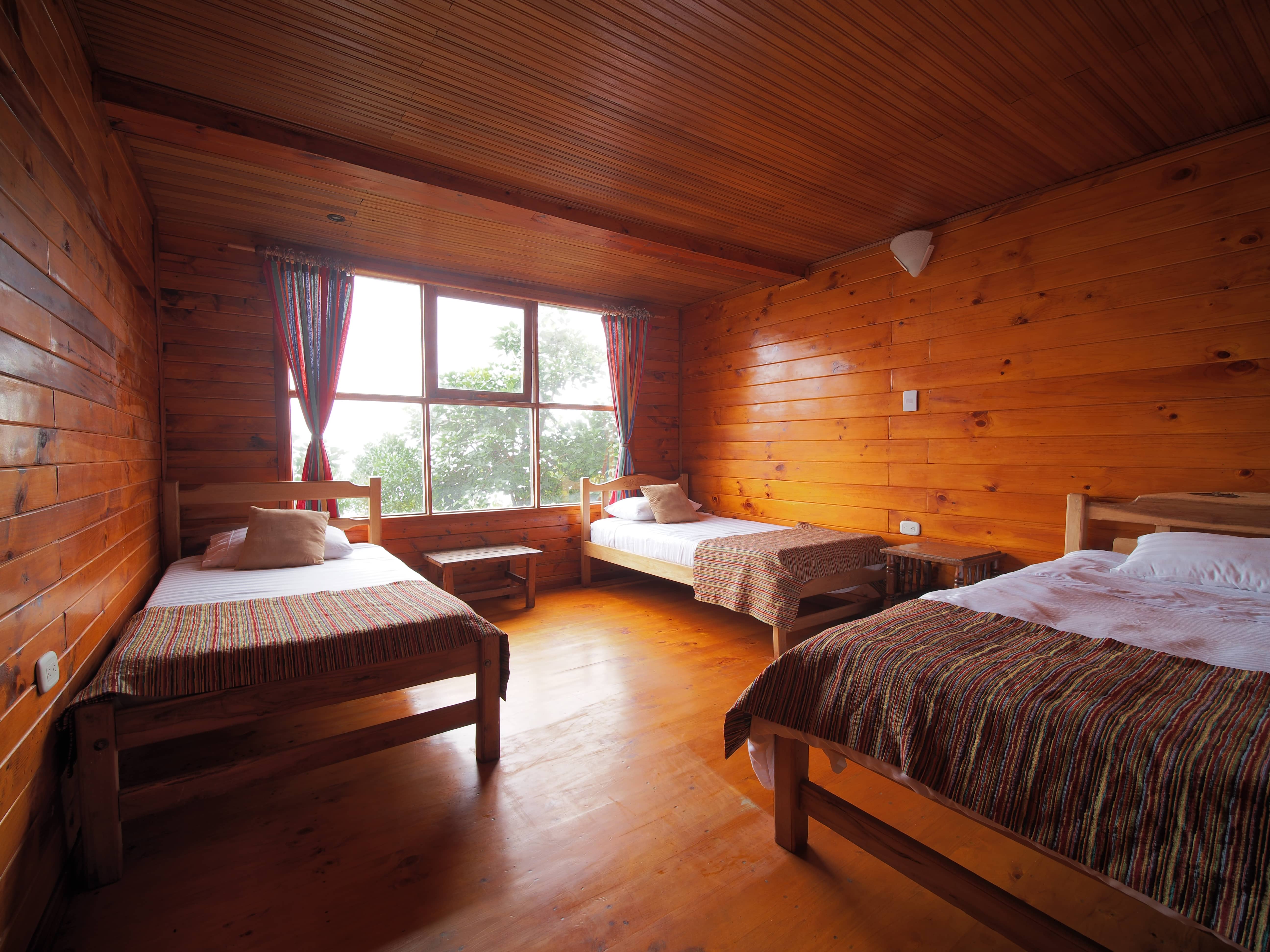 Estas habitaciones son ideales para familias o grupos que quieran compartir, tienen capacidad para 4 personas, ventanales con vista al bosque. Ideales para los amantes de la naturaleza. Tienen baño privado y agua caliente.